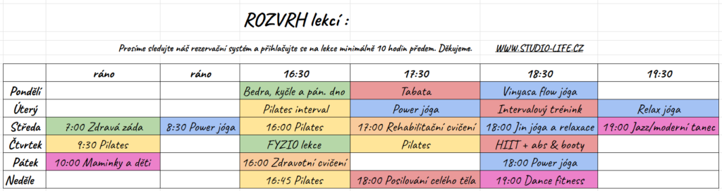 Na každou lekci je NUTNÉ SE PŘIHLÁSIT v rezervačním systému.
